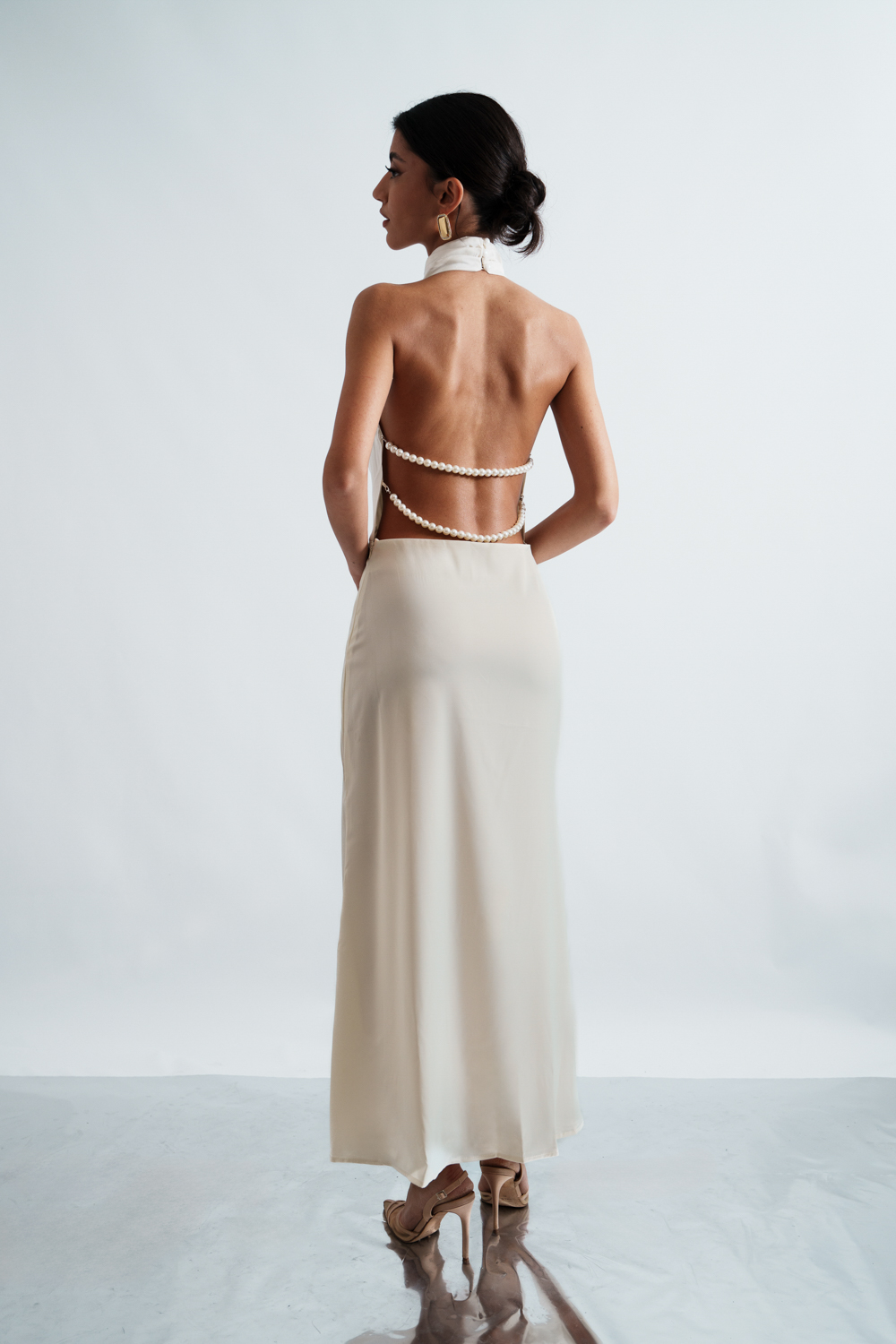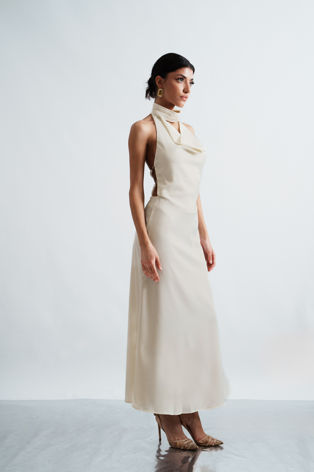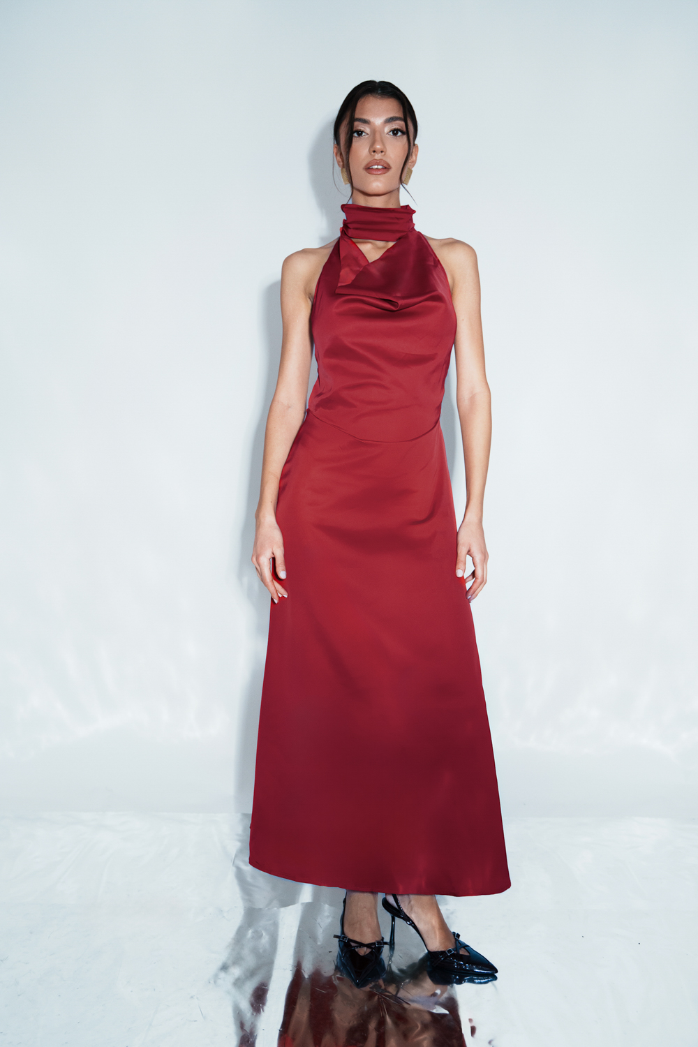 Co-Ord Set – Bodysuit Tied At The Neck With Open Back And Maxi Drape Skirt