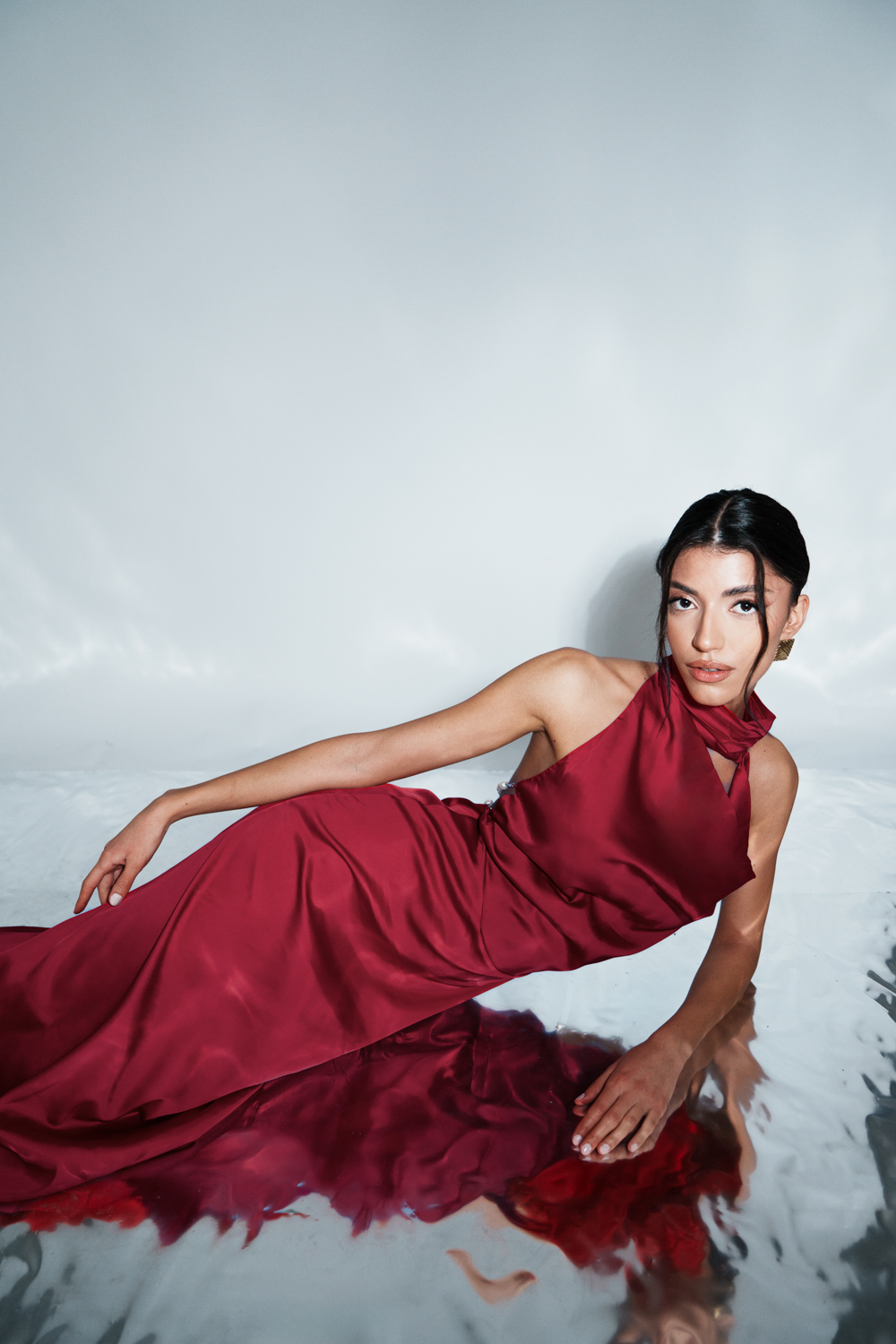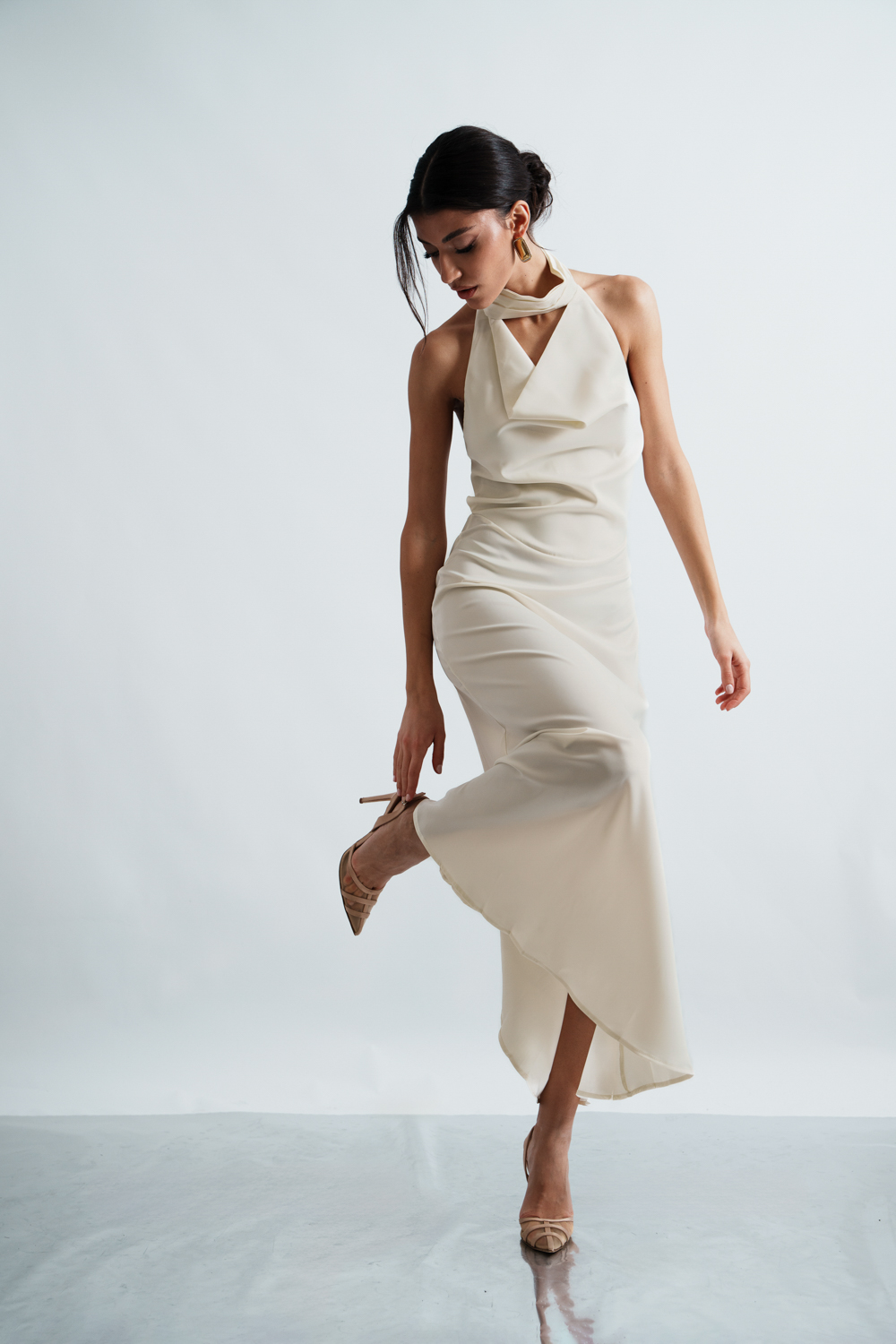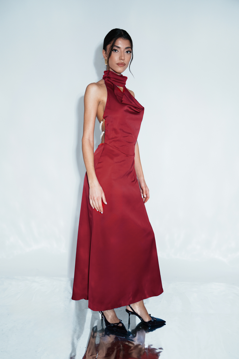 Co-Ord Set – Bodysuit Tied At The Neck With Open Back And Maxi Drape Skirt