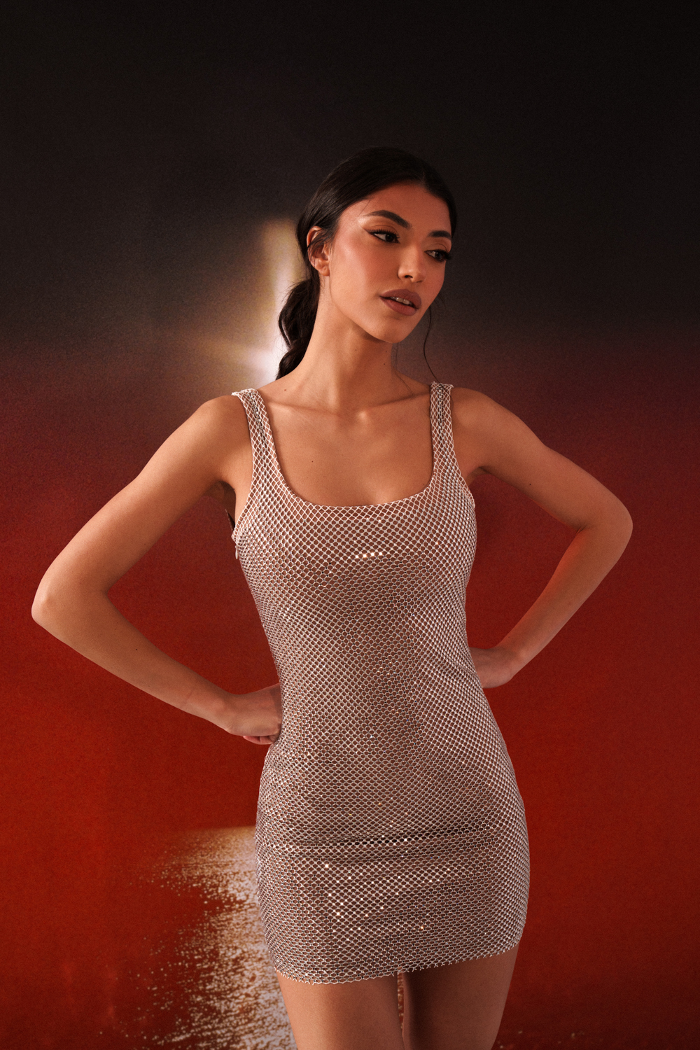 Maxi Dress With Laces On The Back, Scarf And Deep Slit On The Side