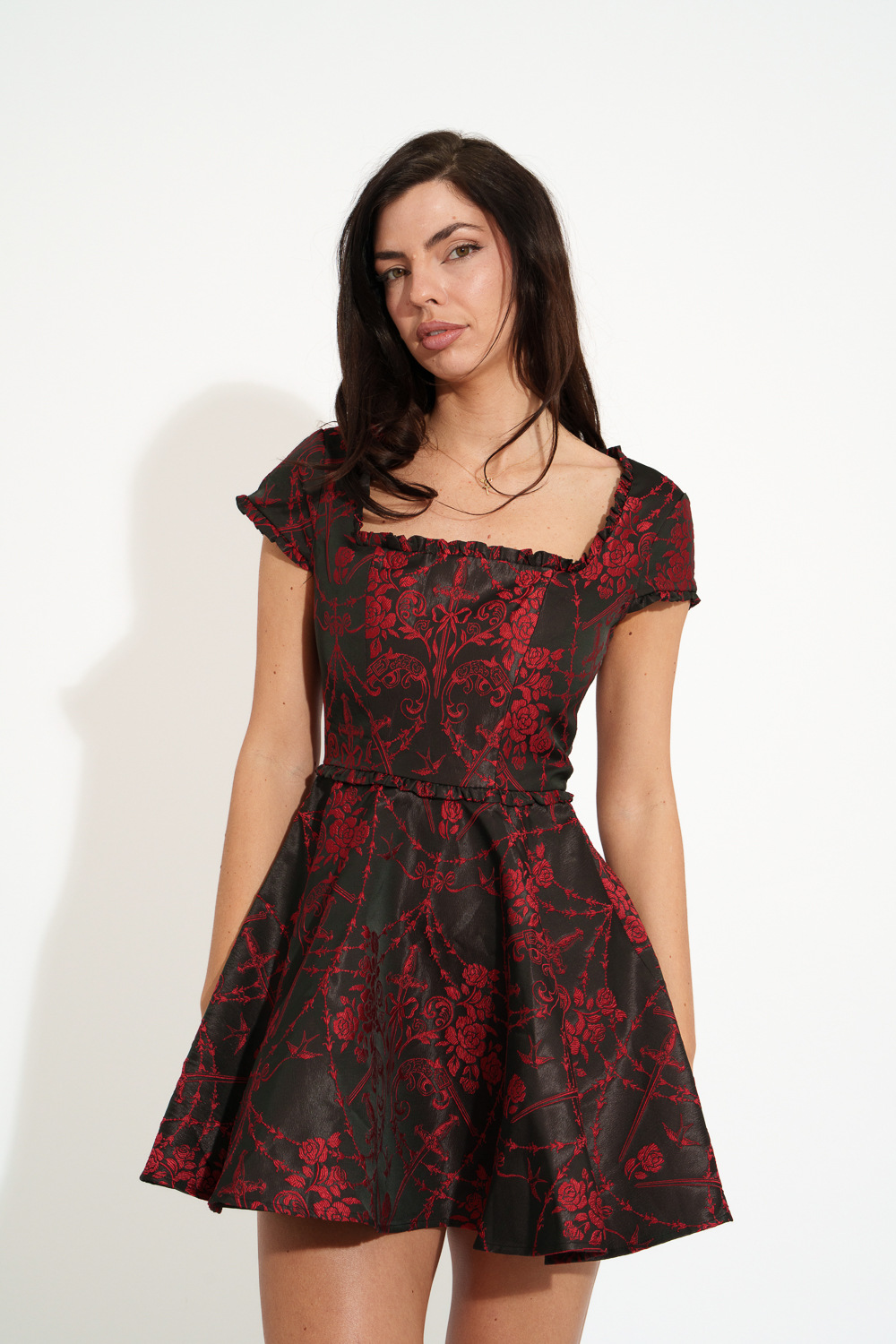 Mini Dress With Straps, Corset Effect And Drape Detail At The Edges – Brown