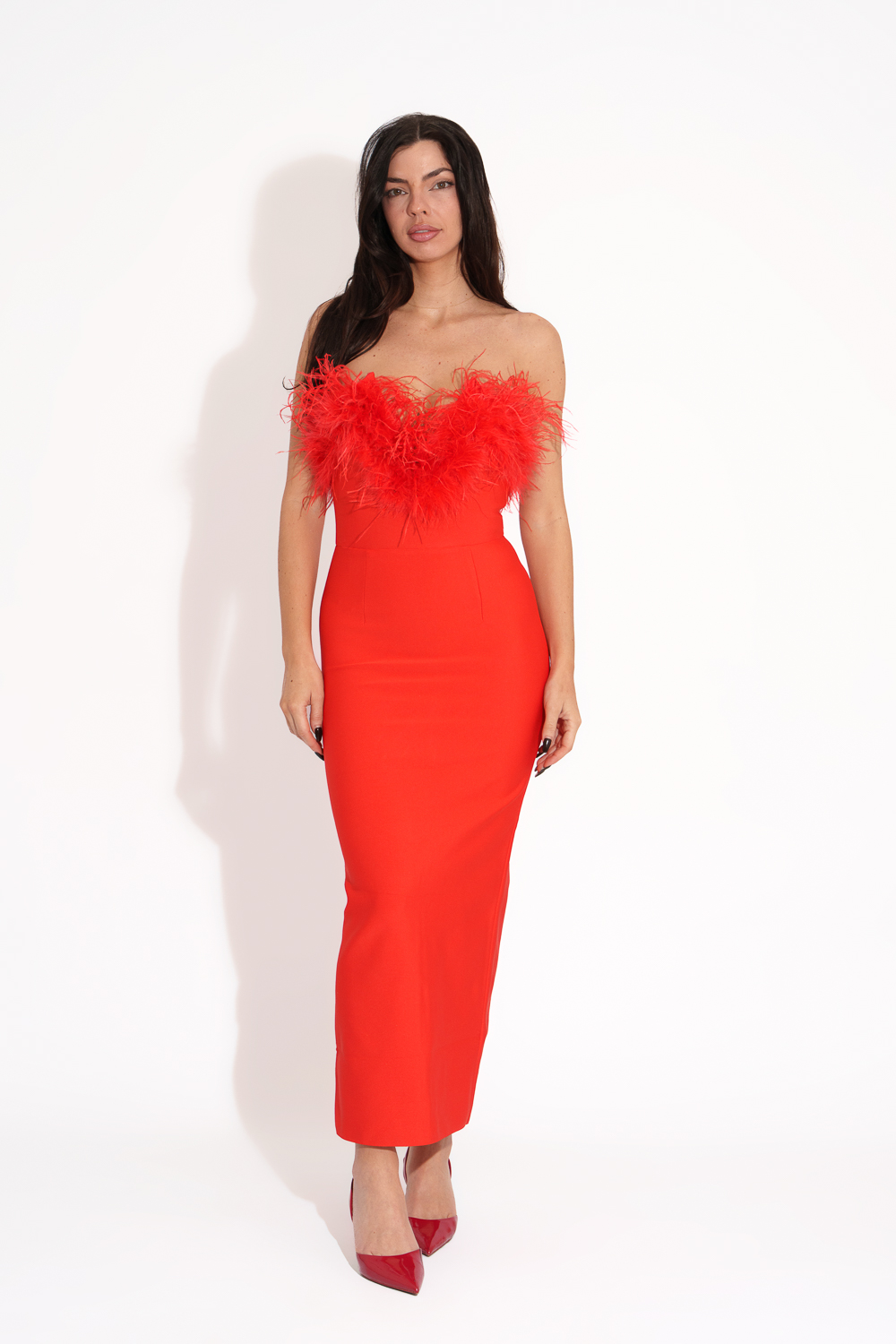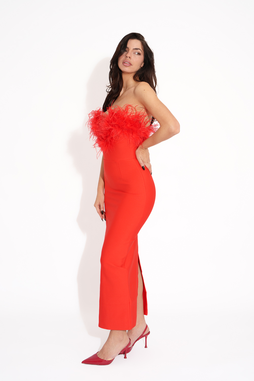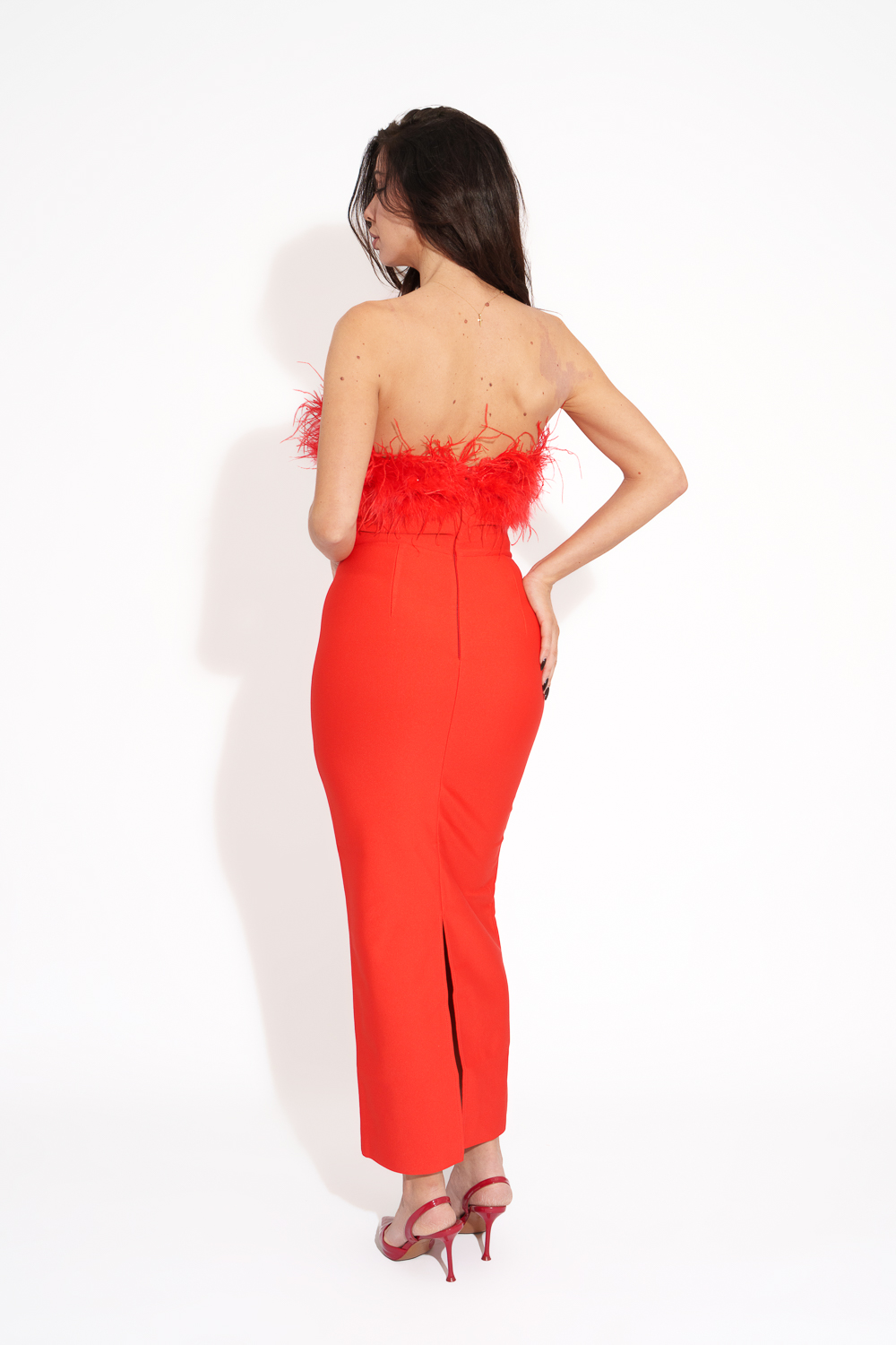 Maxi Satin Dress Tied At The Neck With Laces And Scarf – Red