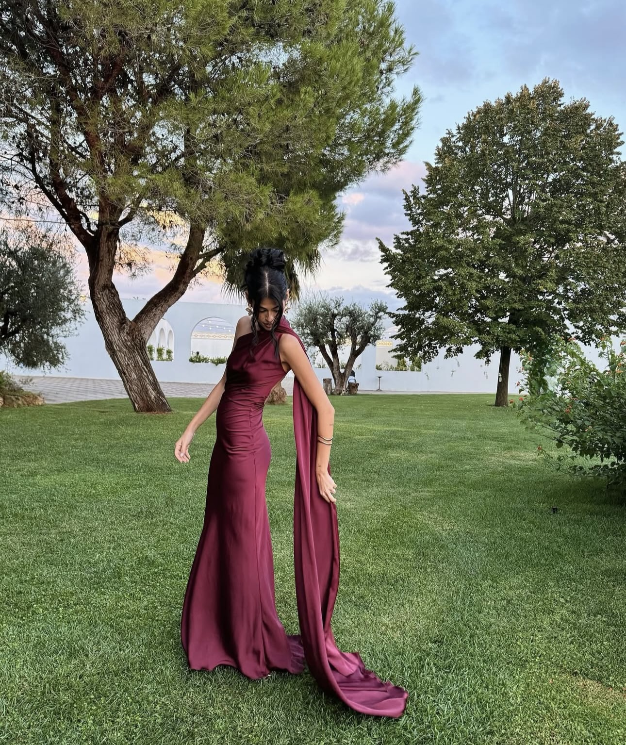 The straps tie in 2 ways : either behind the back in a loop at the waist, or behind the neck