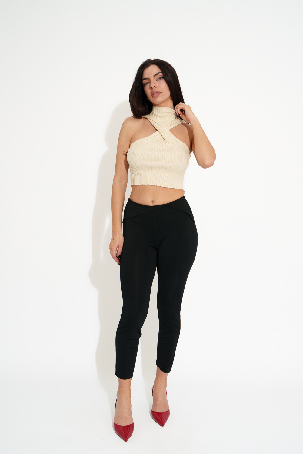 Sleeveless Knitted Crop Top With Inverted High Neck
