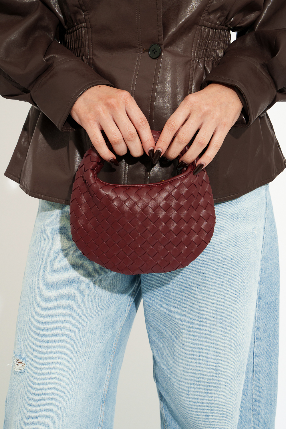 Steel Oval Stud Earrings With Knitted Embossed Frame