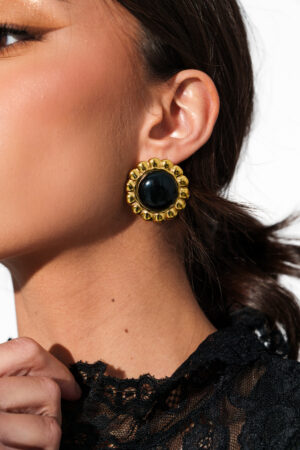 Ατσάλινα Μικρά Καρφωτά Σκουλαρίκια Με Μαύρη Στρογγυλή Λεπτομέρεια