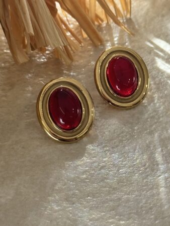 Ατσάλινα καρφωτά σκουλαρίκια με γυαλιστερό σχέδιο και ανάγλυφο πλαίσιο