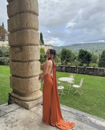 Maxi εμπριμέ φόρεμα με ανοιχτή πλάτη και δέσιμο στο λαιμό