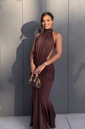 Maxi Φόρεμα Δετό Στο Λαιμό Με Ανοιχτή Πλάτη Ντραπέ Λεπτομέρειες Και Ιμάντα